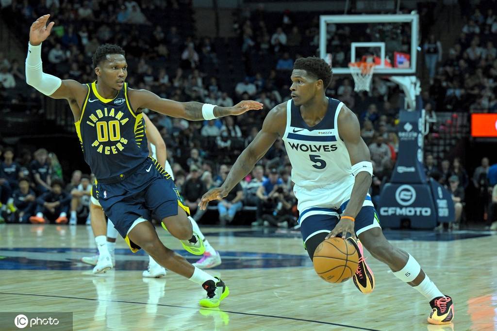 第一节,比赛一开始,森林狼凭借强劲的进攻以5-2取得领先。随着比赛的进行,步行者迅速调整状态,展现出强大的进攻火力,不仅抹平了比分,还一度领先森林狼11分。虽然小节后段森林狼有所反扑,但步行者依旧掌握主动权。本节比赛,森林狼的爱德华兹表现出色,得到11分,其中包括一记三分。第一节结束,步行者以37-29领先。